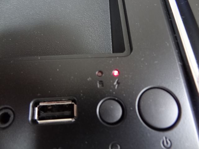 電源スイッチを入れると小さな赤いLEDが点灯します。その隣はSSD/HDDのアクセスLEDになります。