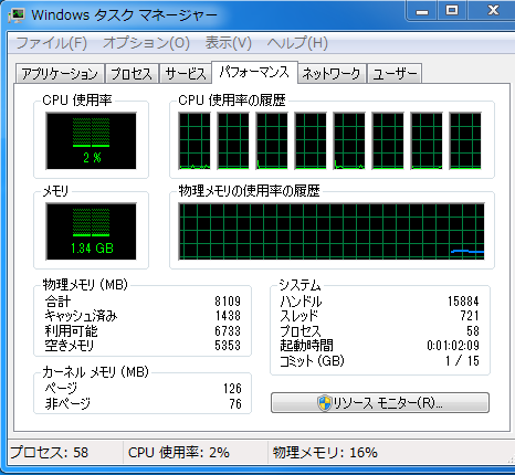 Windowsタスクマネージャーの「パフォーマンス」から