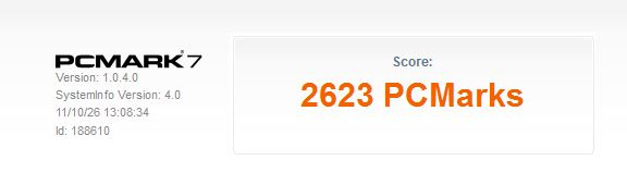 PCMARK7です。無料版をダウンロードして自作PC(Corei7-2600K3.4GHz )とDynabook(Core i5 560M 2.66GHz)で比較してみました。