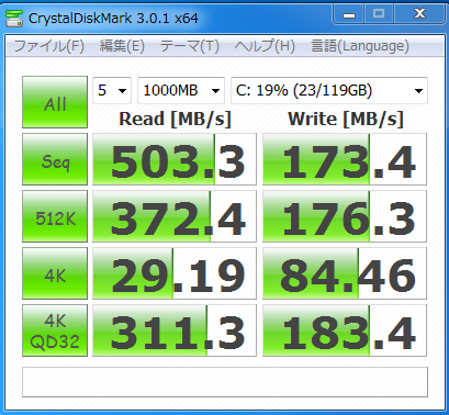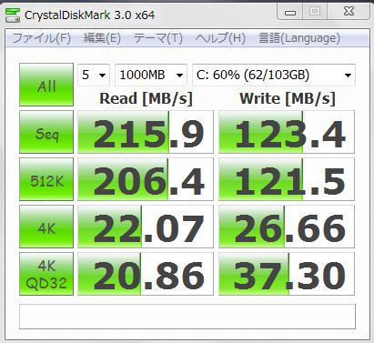 これでもHDDからすればかなり速くなったのですがSATA3接続のCRUCIALのM4SSDにはかないませんね。