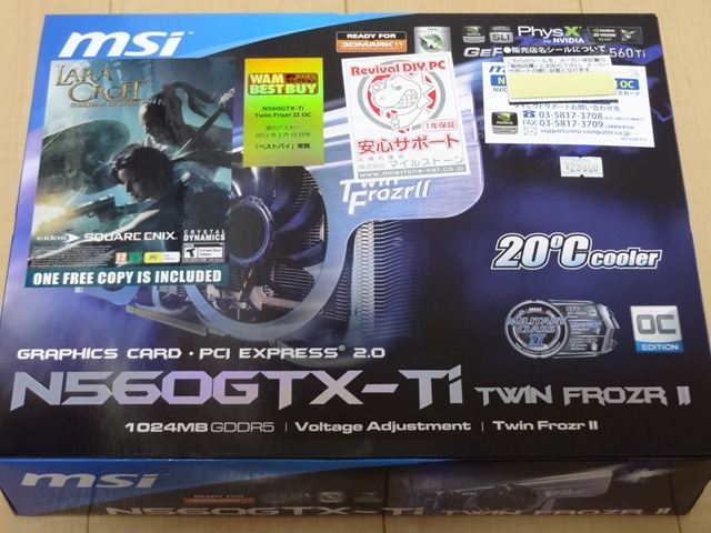じゃーん!! 早くもUpGrade 第三弾になります。グラフィックボード(ビデオカードとかVGAカードとも呼ばれています)の増設です。購入したのは予定通りMSI N560 GTX-Ti Twin FrozrⅡ OCです。