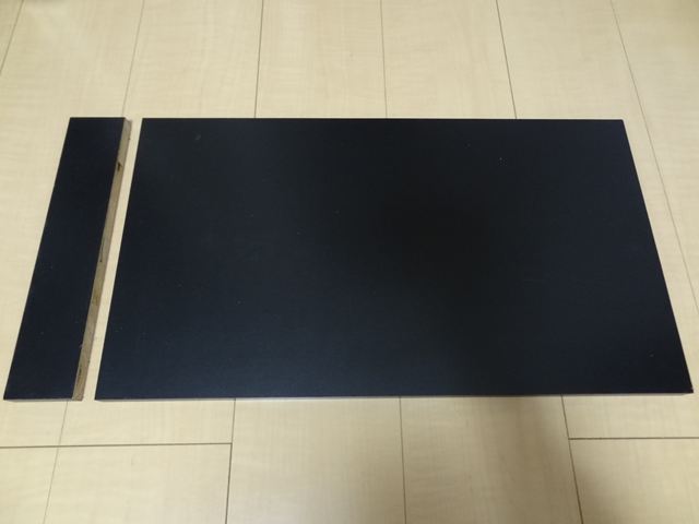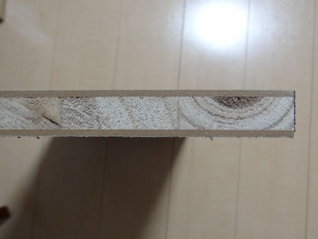テーブル本体の化粧板です。300mmX600mmの板をお店で300mmX537mmにカットしてもらいました。