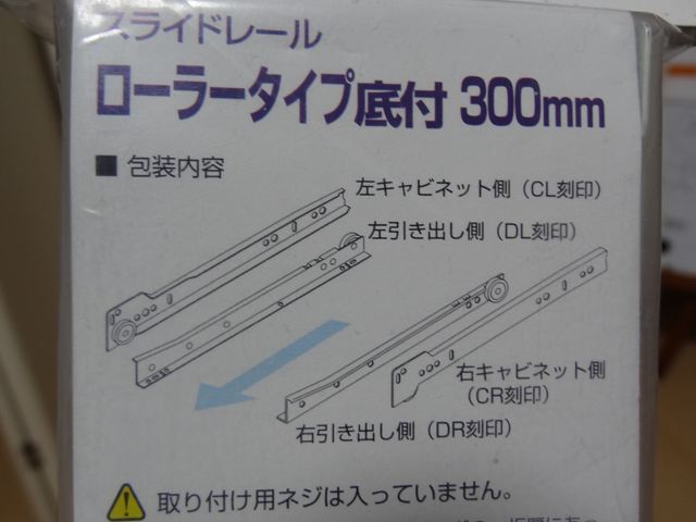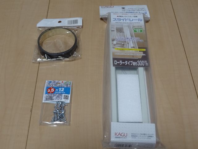 スライドレールと木口に貼るテープと木ねじです。