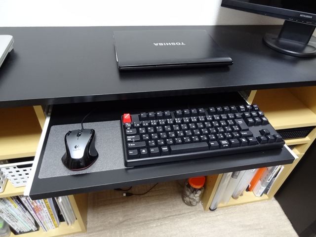 自作PCのキーボード、マウスを置く場所が無いのでPCデスクにキーボードテーブルを増設しました。