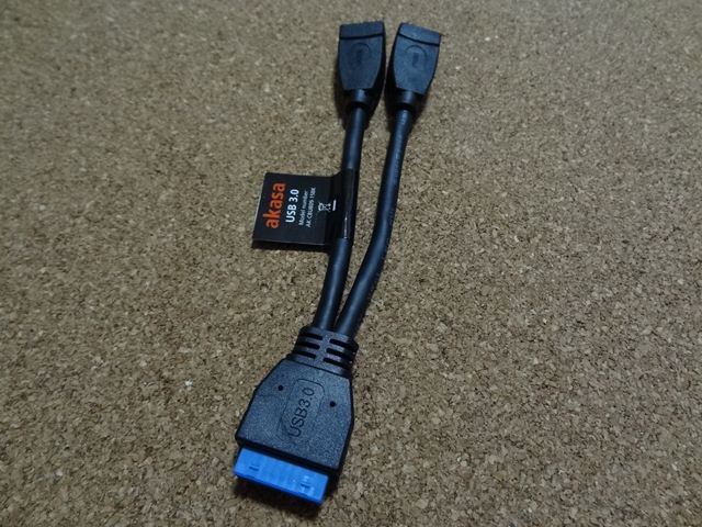 しかし背面のUSB3.0は何かの時に使うかも知れないので、出来れば使わずに残しておきたいです。幸いマザーボード上にはUSB3.0のコネクタがありますからこれを使わない手はありません。しかしマザーボードのコネクタは2X10ピンなので、これをStandard-Aのメスに変換するケーブルを用意しました。