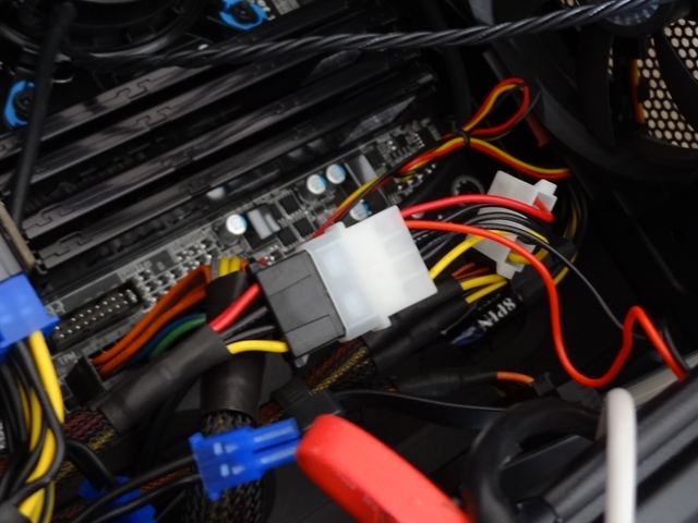 ペリフェラル電源ケーブルを接続するためにPCの電源にペリフェラル電源用のケーブルを追加接続します。