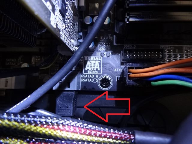 次はeSATAです。マザーボードのGSATA3_6に接続しました。このポートはSATAおよびSATA3に対応します。