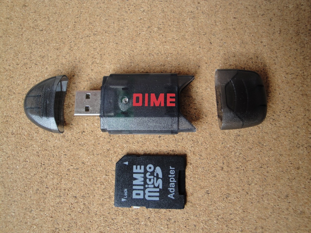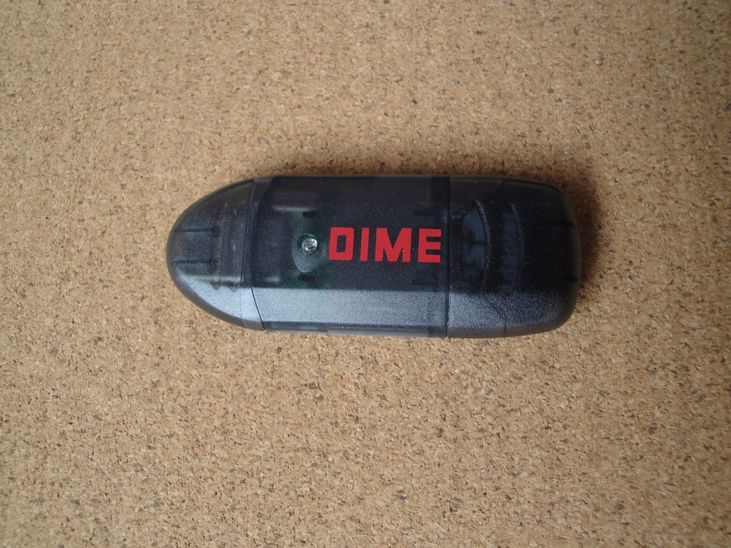 赤いDIMEの文字がいいアクセントになっていますね。カードリーダってもう少し高いものだと思っていましたが、この頃になると100均でも見かけるようになりましたね。