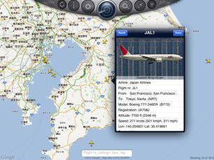 詳しい情報が表示され、航空機の画像が表示されます。Free版では画像が表示されなかったと思います。