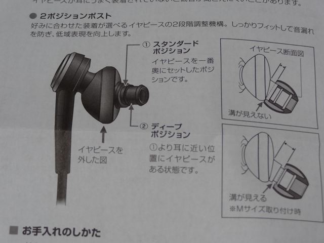 簡単な仕組みですがイヤーピースの取付位置が2段階に変わるんです。