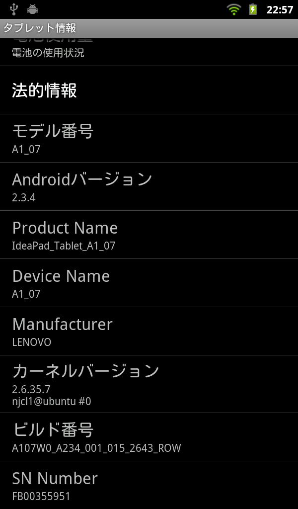 Ideapad Tablet A1 システムアップデート