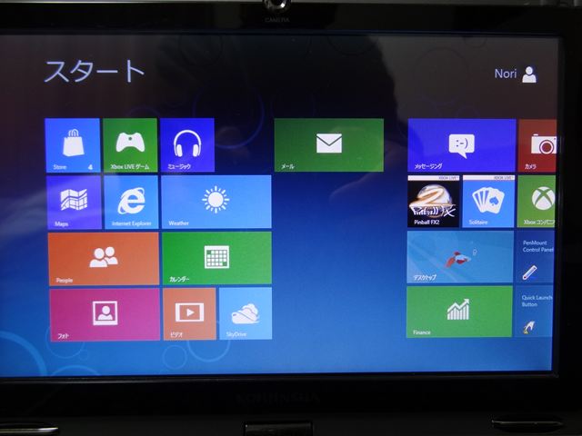 簡単にWindows 8の機能を見てみましょう。これがスタート画面です。ここにはよく使うアプリがタイル状に並んでいます。