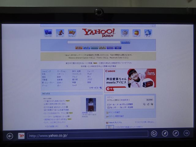 例えばIEをタッチすると。今までのIEとちょっと違いあっさりした画面です。
