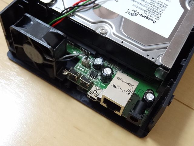 フタを開けて内部をちらり。3.5インチのHDDがどーんと入っています。現在販売されているキットは2.5インチHDDも取り付けられるようになっています。