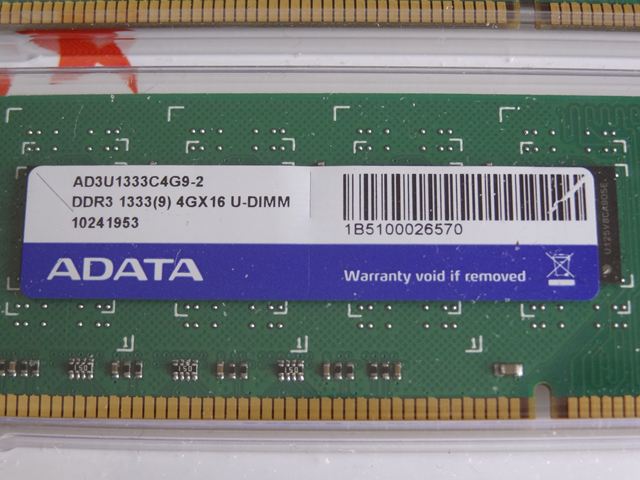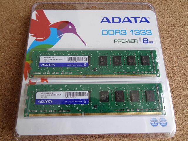メモリはADATAのAD3U1333C4G9-2 4GBX2
