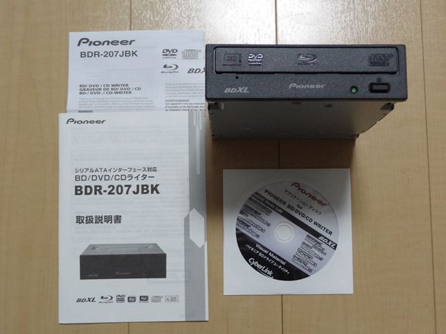 光学ドライブは自作1号からDVDドライブを借用する予定だったのですが、外したりするのが面倒なのと近いうちにBluray Driveを購入するなら、前倒しで購入してしまおうと言うことでパイオニアのBDR-207JBKを購入しました。しかしBDR-207JBKは自作1号機に取り付け、代わりに外したBRD-206JBKを自作2号機に取り付けます。