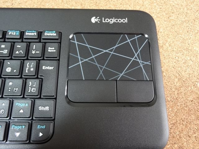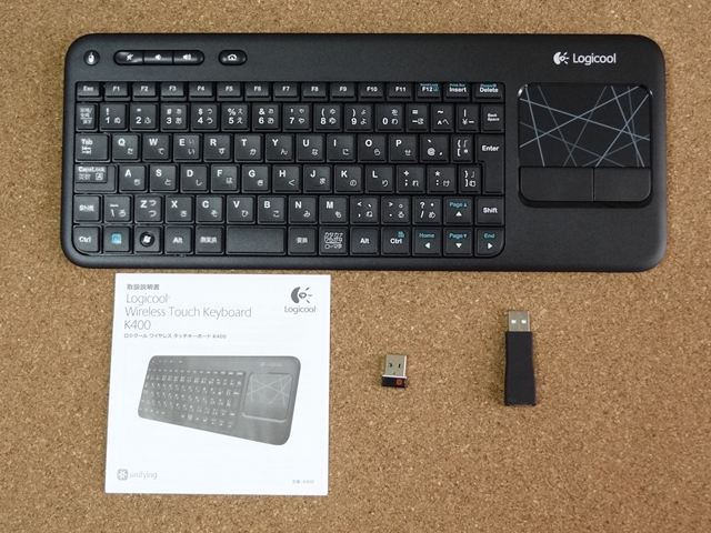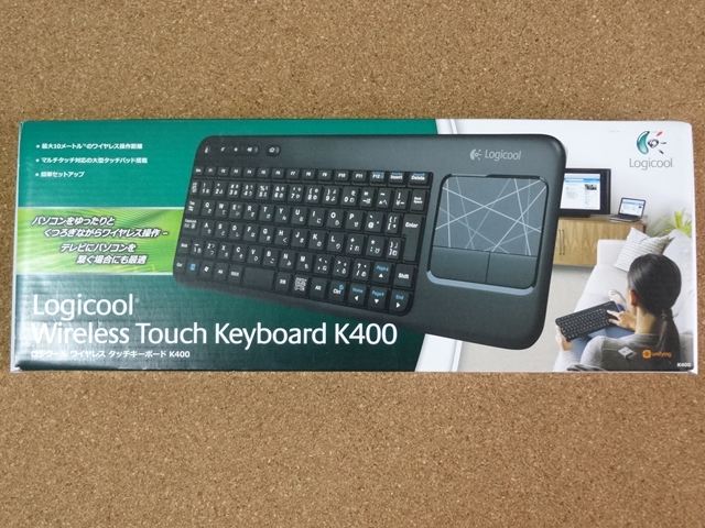 Logicool Wireless Touch Keyboard K400です。このキーボードはワイヤレスでキーボードの右側にタッチパッドを備えており、ソファやベッドサイドでPCを操作する際にマウスを使わなくてもカーソル操作が可能です。