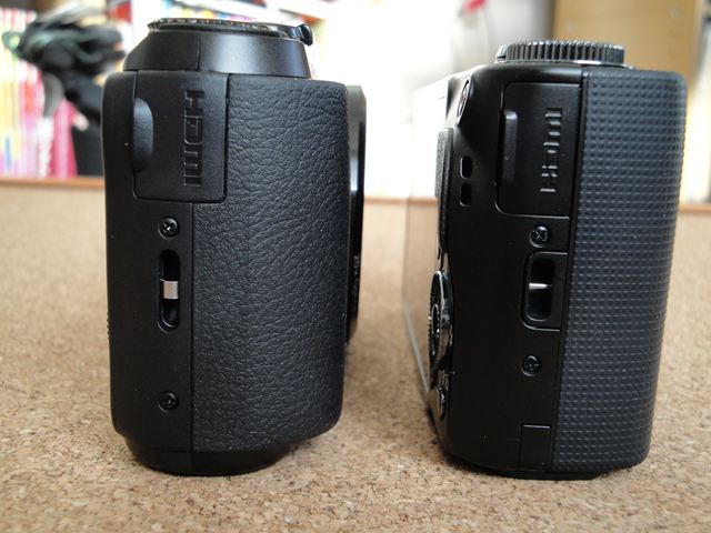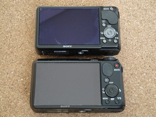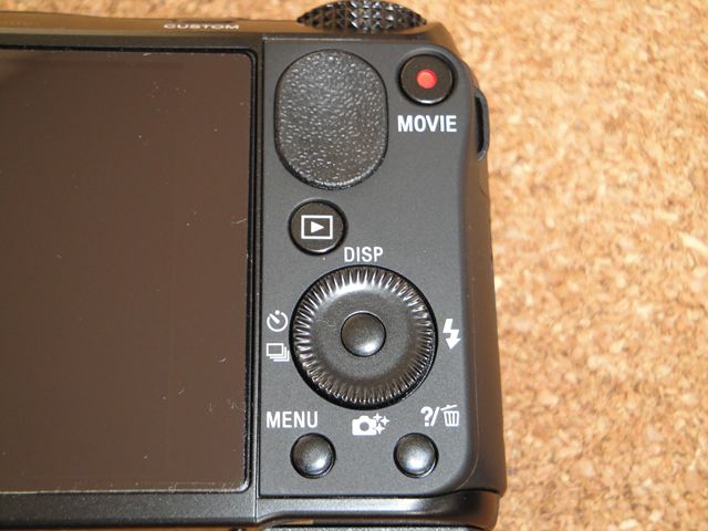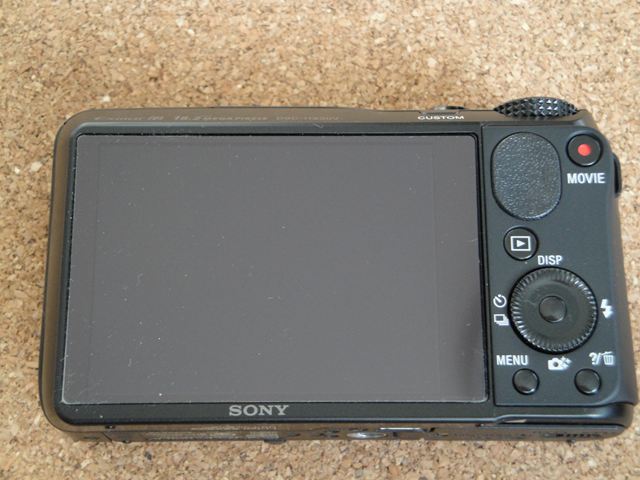 液晶モニター側。基本的にはDSC-HX9Vと変わりないです。こちら側の親指が当たるところにも滑りにくい素材が使われています。