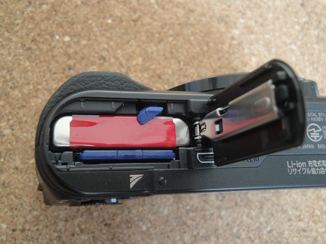 バッテリーカバーを開けてみます。バッテリーとSDカードが入っています。