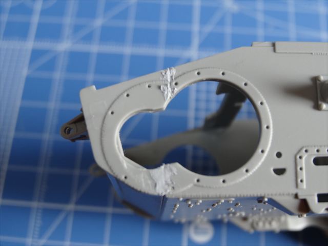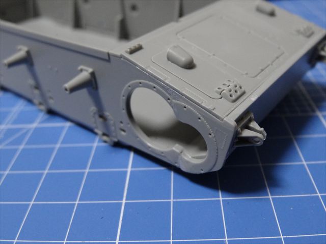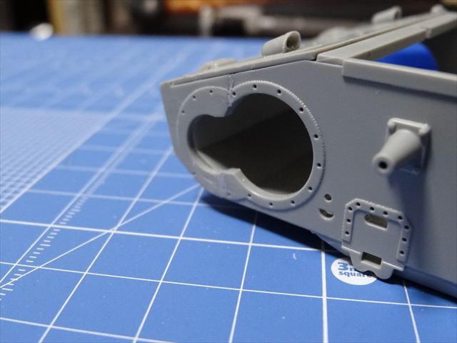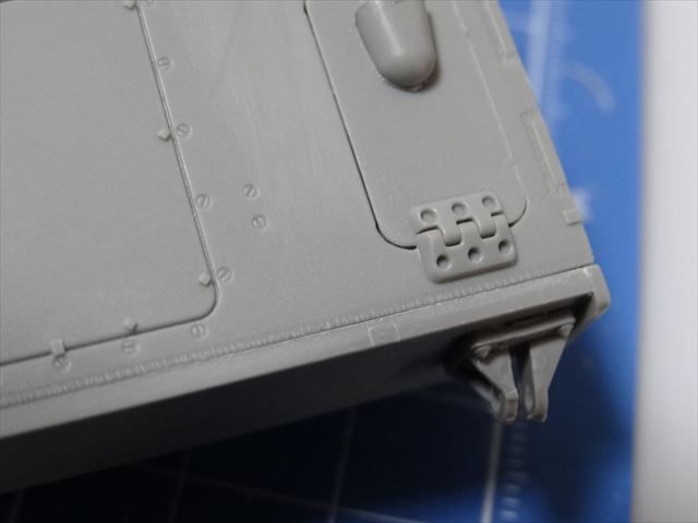 パネルとシャシーとの間に隙間が出来ないように摺り合わせをしました。パネルの端部には非常に細かい溶接跡のモールドがあります。