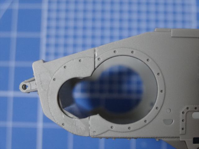 通気孔の装甲カバーの内部をえぐって薄く整形します。
