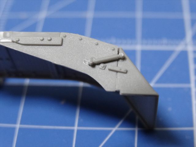 そこでこの部品の裏表を逆に取り付けることにしました。そうすればきれいなモールドが表面に出てきます。取り付けピンはナイフで切り落とせば問題ありません。
