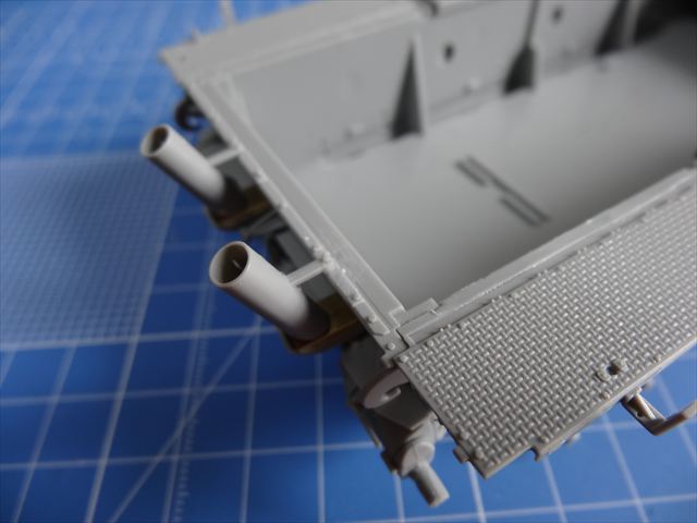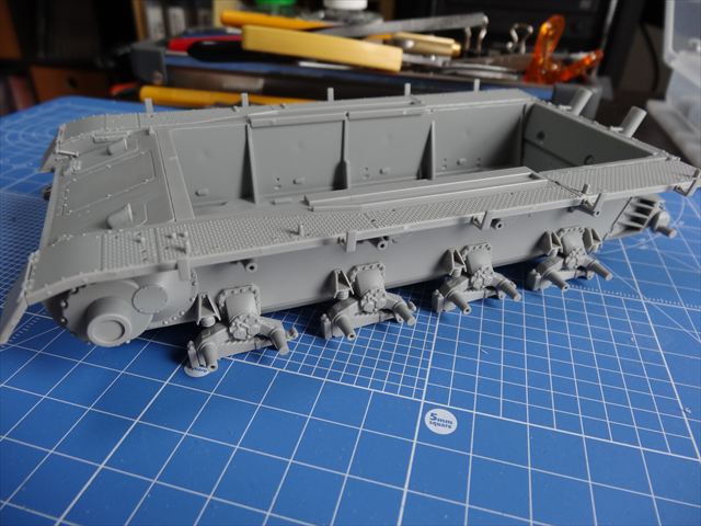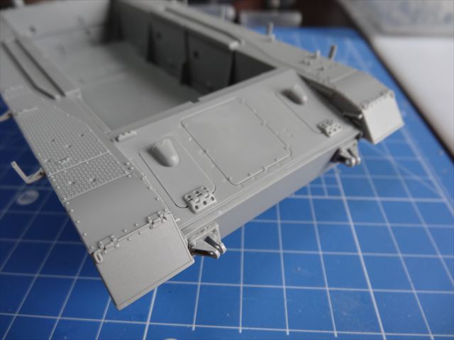 後方からの図。後部フラップはキャタピラ取り付け時に邪魔になりそうなので、今は付けないでおきます。