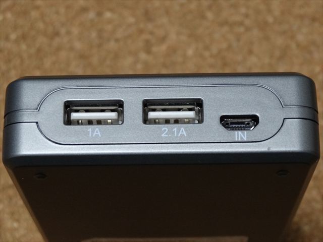 左から1A出力、2.1A出力、それから充電用の端子になります。