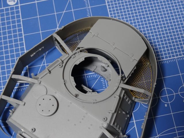 砲塔後部にエッチングの編み目板で底を塞ぎます。
