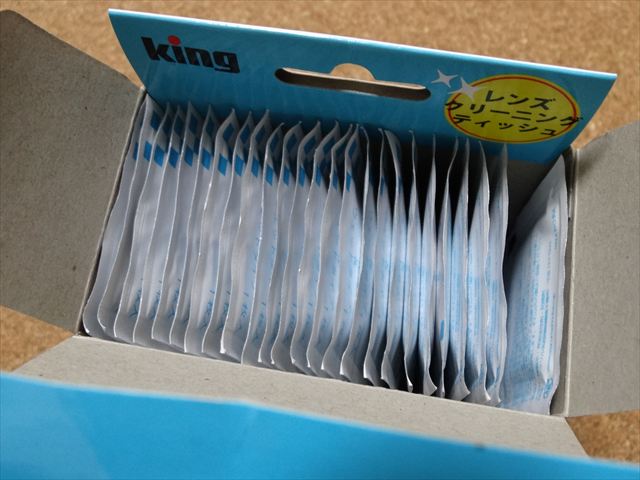 特徴はノン・アルコールなのでレンズのコーティングに影響が少ないことと1回使い切りにの小口パッケージになっていることです。1箱に50枚入っています。