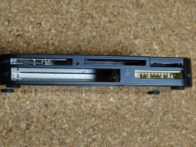 カードスロット側。コンパクトフラッシュ、SD/SDHC/SDXCカード、microSD/microSDHC、メモリスティック、XDピクチャーカード等57種類のカードに対応しています。