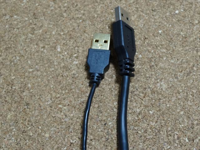 接続ケーブルは太いです。左がUSB2.0で右がUSB3.0です。高速になるとシールドとか重要になるんでしょうね。