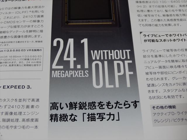 本日、ビックカメラ名古屋駅西店に行ったらニコン D7100のカタログがおいてありました。