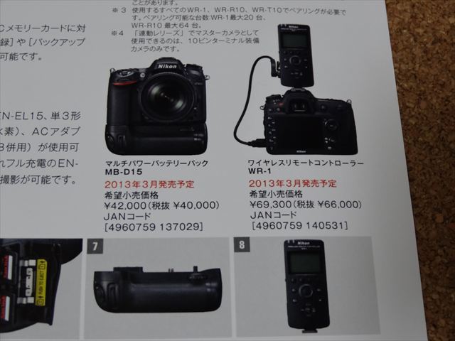 この他に新発売のマルチパワーバッテリーパック MB-D15とワイヤレスリモートコントローラ WR-1も記載されています。