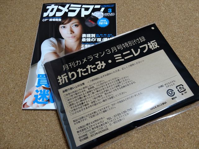 月刊 カメラマン 3月号に付録としてオリジナル小型レフ板がついています。