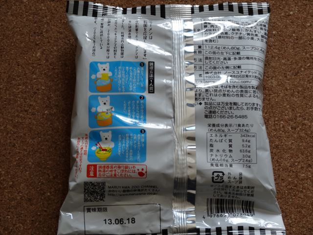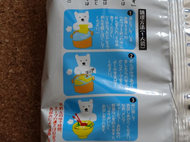 これが白クマ塩ラーメンです。偶然近所のスーパーに売られているのを発見したんで、あまりの可愛さに買ってみました。