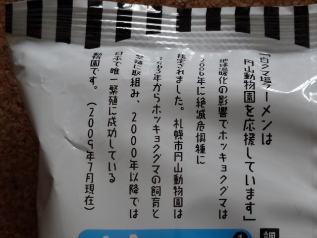 白クマラーメンは円山動物園の白クマ(ホッキョクグマ)の繁殖を応援しています。というメッセージが書かれています。