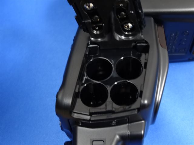 電池蓋をオープン。単3形電池が4本入ります。通常の1.5Vアルカリ電池や1.2Vのエネループのような充電池が使えます。