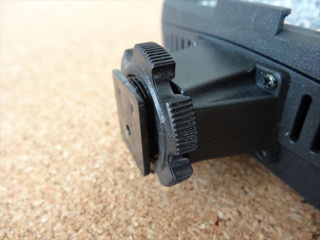 カメラのアクセサリーシューに取り付けるための留め具。すべてプラ製です。シューにはめて大きなねじを回して固定します。