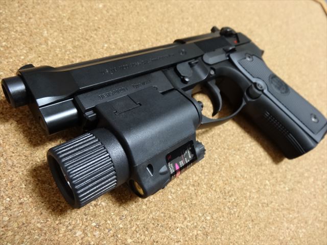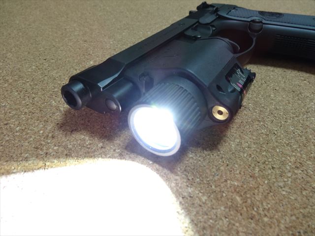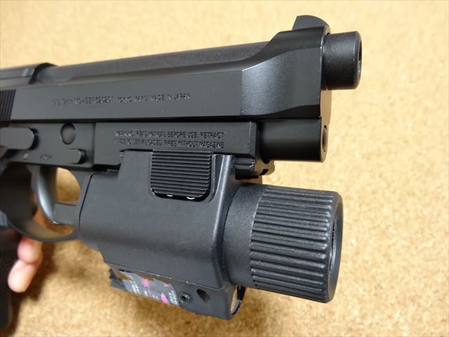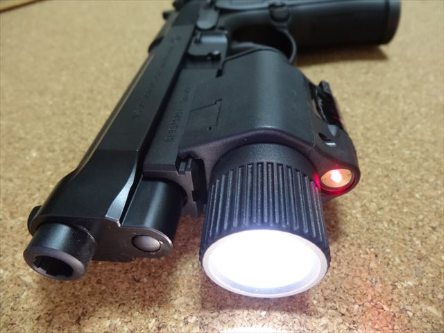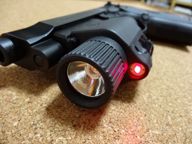 本体の外観を見ていきましょう。LEDライトとレーザーサイトです。全体はプラ製でそれ程重量感はありません。