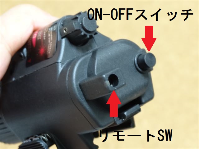 本体の後部にライトの切り替えスイッチがあります、これでレーザーのみ-LEDライトのみ-レーザー+LEDと切り替えられます。