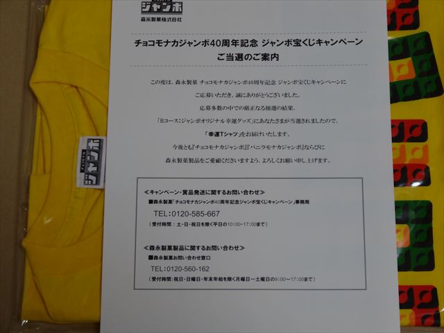森永製菓のチョコモナカジャンボ40周年記念宝くじキャンペーンで「幸運Tシャツ」が当たりました。