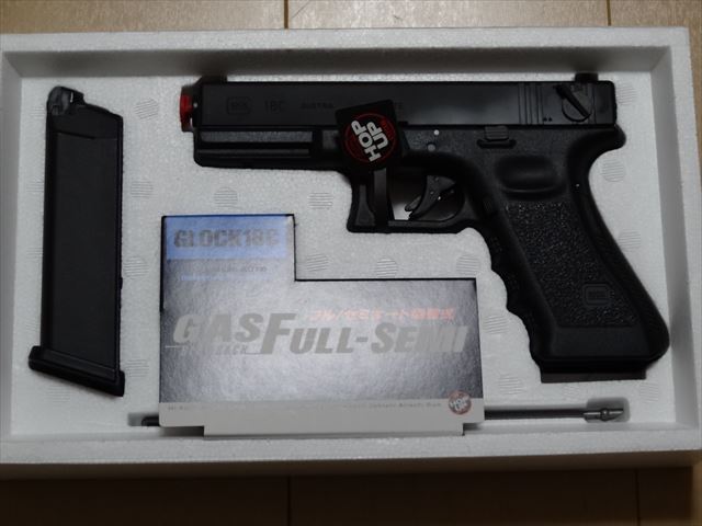 東京マルイのガスブローバックハンドガン グロック18Cを購入しました。購入の動機としてグロックのスタイルや形状が手に馴染むことからグロック17が欲しかったんですがMGCのG17があるのでかぶらないように、ハンドガンでありながらフルオート射撃が出来るG18Cを購入しました。G18Cには電動もありますが充電が面倒なのと、マガジンがリアルでないのでガスにしました。
