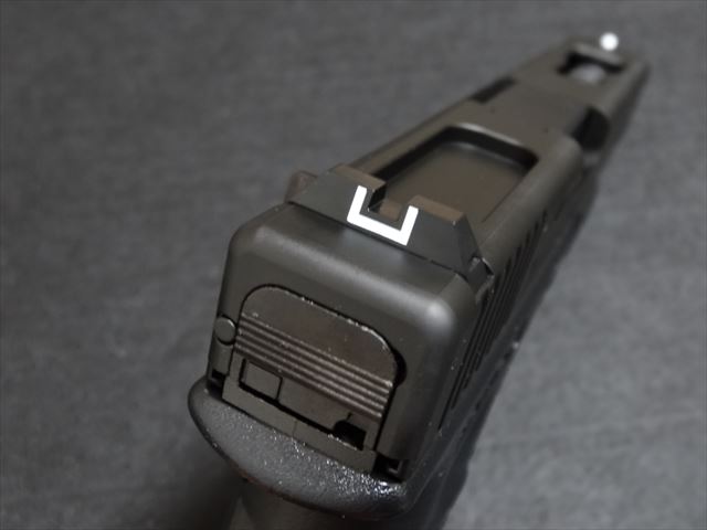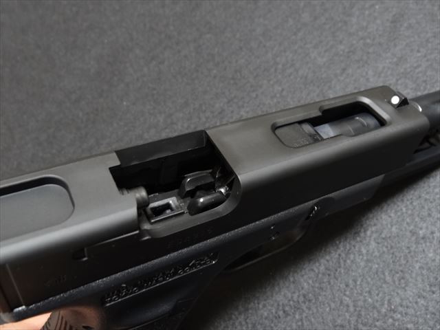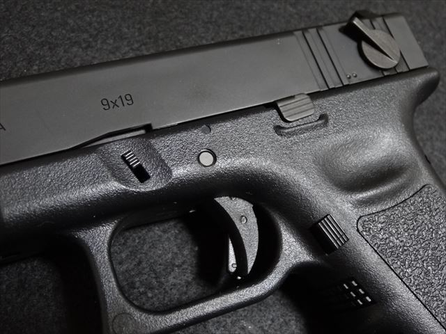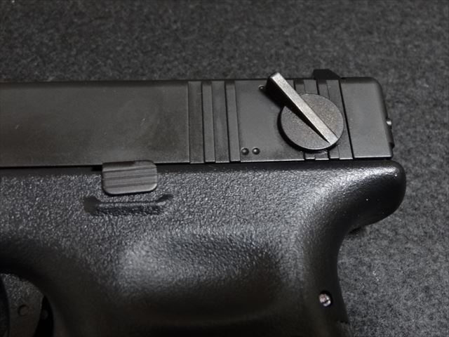 マルイのグロックはシリアルナンバープレートを後ろにスライドさせるタイプのマニュアルセフティになっています。