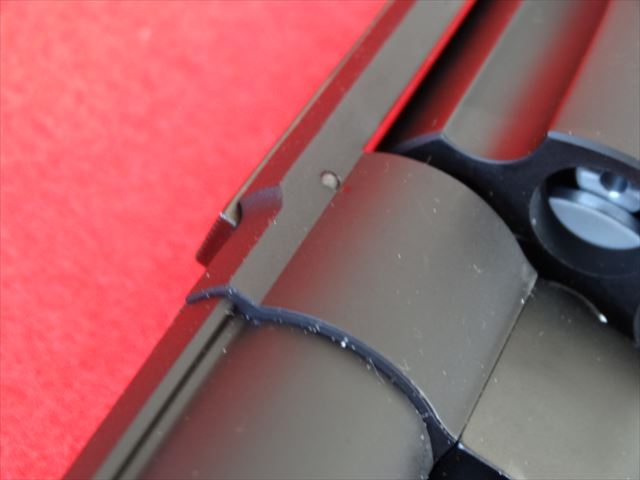 銃全体の仕上げはツヤ消しの黒です。ガンブルーのような黒光りする仕上げが理想ですが。