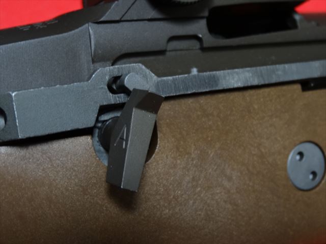 レシーバーの右側面にあるレバーがフル・セミの切り替えです。この状態がセミ。