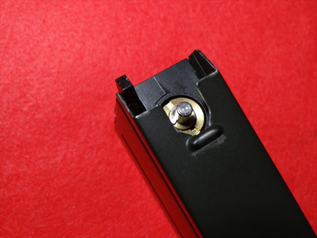 マガジンの上のところに金色のものが見えますが、これはMADE IN TAIWANのシールです。