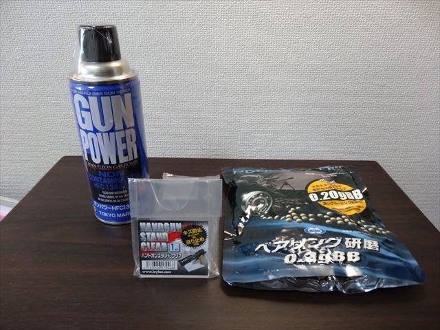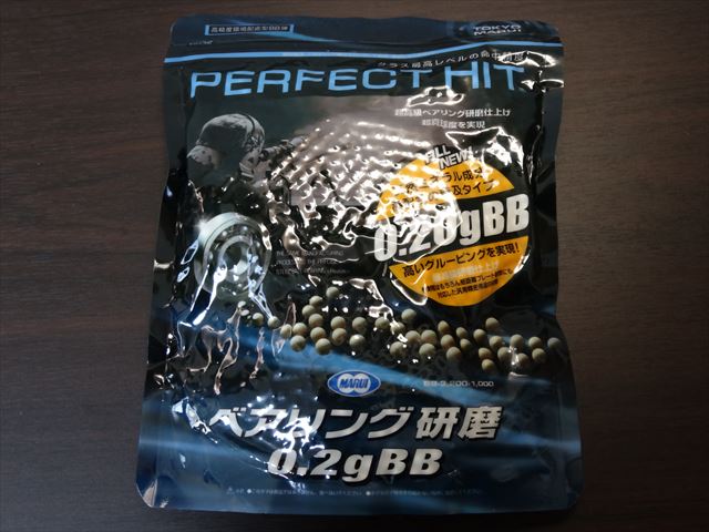ガスは紹介するまでもないので省略。次はBB弾。0.2gのベアリング研磨の8歳以上用のエアーガンで使用する、一番スタンダードな重量のBB弾です。