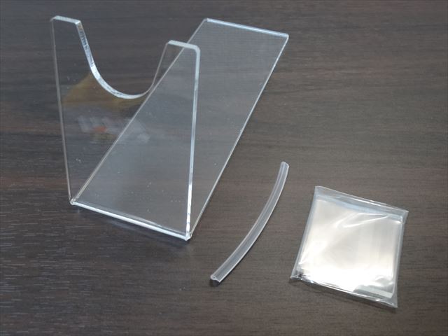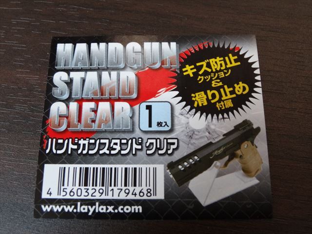 次はアクリルのハンドガンスタンド。スタンド本体とキズ防止のクッションと滑り止めが付属しています。