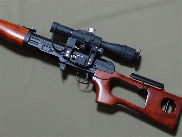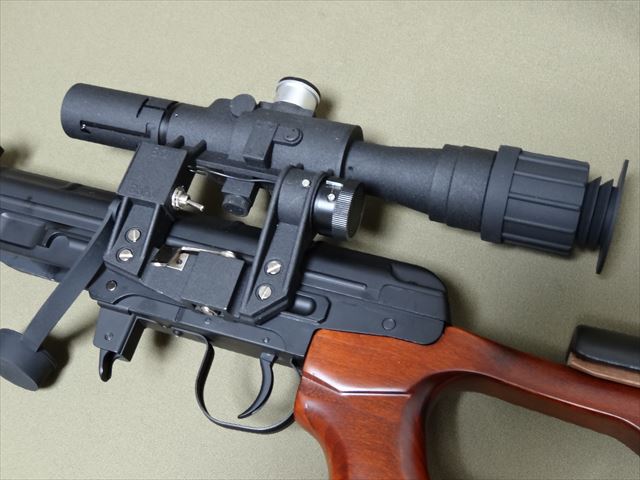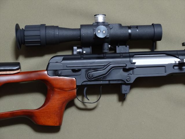 スコープが取り付けられたドラグノフをご覧下さい。さすがA&Kに対応しているだけあって削ることもなく取り付けられました。